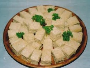 Cut the crusts off sandwiches and then cut each sandwich into 6 rectangular pieces.