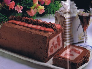 - Line a loaf tin (base measures 9cm x 22cm) with a strip of aluminium foil, cut pieces of cake to line base and sides of tin.